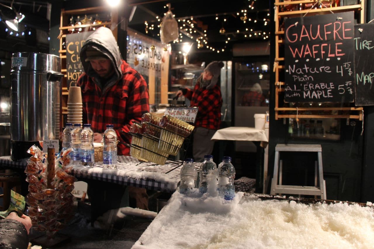 That evening we had a fabulous night out in Montreal’s Old Port. We started off with a 6pm reservation at the spectacular L’Auberge Saint-Gabriel which features awe inspiring contemporary Canadian design and a celebration of a distinctly Quebecois haute cuisine. Once finished dinner we bundled up and headed to Igloofest. I was captivated by the concept: a wild and wonderful electronica music festival in the middle of a blizzard. Such a distinctly Canadian experience. The festival has forged a reputation for itself through its punchy visuals and architectural concept, an ambitious DJ lineup and an enchanting igloo village. Thousands of ravers dressed in snow suits danced in an ocean of snowflakes. We spent the majority of our time in the VIP Media Zone sponsored by Sapporo and Tia Maria. Our balcony provided an excellent spot to shoot photos of the dance-tastic crowd. On our way home we picked up two hot waffles covered in maple butter and pipping hot cups of spicy apple cider. I’ll never forget that quintessential Montreal moment at midnight.