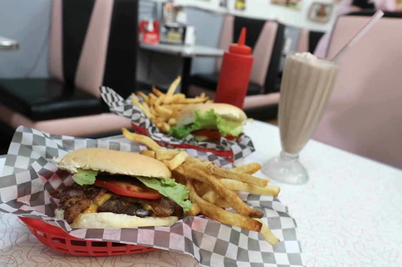 We enjoyed a quick stop after an hours drive to grab a bite to eat in the small town of Black Diamond. We strolled up and down the street, popping into a hilarious vintage shop with a cowboy cardboard cutout which read “If it ain’t Alberta, it ain’t Beef.” We screamed with girly glee after discovering Marv’s Classic Soda Shop. The restaurant features an ice cream parlour, gift + candy shop and vintage diner decorated with plush pink and black booths, jukebox and ton of kitschy Elvis and Marilyn Monroe memorabilia. We devoured two Alberta beef burgers with fries and slurped it all down with an orange soda + vanilla ice cream float and chocolate + peanut butter milkshake. We continued to cruise south along Highway 22 arriving at Sierra West Ranch an hour after finishing lunch.