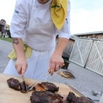 A group of us trotted over a hill and into a wee valley where we scooted cattle into a pen. Over the next few hours I watched as real cowboys spun ropes into the air and dragged calves to the ground. Each of them were quickly administered a vaccination, punched identification tags on each ear (one RFID and one ranch specific) and branded on their rump. It was in these few hours that I silently observed a team of ranchers pitch in to prepare calves for maturity. The calves were then released back into the field to happily graze with their mums. I stared back at a pair of exhausted ranchers who wiped their brows in the hot heat. It was at that moment that I promised myself, “for the rest of my life when I stand before a steak I will remember and appreciate the hard work of Canadian beef farmers.”