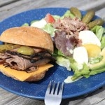 Chef Andrew Stevens left us a Do-It-Yourself Beef Brisket Cobb Salad featuring avocado, hot house tomatoes, buffalo mozzarella, lettuce, smoked beef brisket and herb and buttermilk dressing. We devoured our meal then hopped once again on our horses to enjoy one last romantic ranch moment. Our adventure would have us trotting through tall grasses, zig zagging along rocky mountain terrain and splashing through a creek.