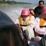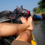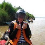 The driver stood in the back of a run down canoe basically (holding onto his chainsaw motor, stuffing ear plugs in his head and fastening on a helmet). All of our bags were placed at the front of the boat. My best bit of advice is to run to the front of the boat and sit right in front of the luggage. I was able to dangle my feet over the side of the boat and rest them on top of the luggage while passengers in the middle rows were stuck crossing their legs for 6 hours straight! The motor is incredibly loud and the seating is most certainly uncomfortable. I plugged myself into my ipod and listened to Daft Punk blast itself along the river. I fastened my helmet snug around my head and had one of the most beautiful journeys of my life. Once everyone was in the boat we literally floating 1/2 foot from the water. I felt like I was sitting on a lily pad buzzing through rapids.