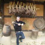 There were plenty of staff at the Folk Village dressed in traditional attire. I felt as though I was in a classic samurai movie as they tip toed around their houses looking ever so rurally regal. These dressed “period actors” displayed various life styles. We stopped at a woman manning the ceramics hut who was making overtly erotic sculpture. A group of woman showed us how people used to process glutinous rice for the tea ceremony. Several men sat on a stoop making weaved mats and baskets made of thick dried straw. We turned a corner into an open square and I was soon repulsed by two ladies who were actually making silk from silk worms. One held a sort of spindle wheel collecting the thread and the other had the larvae or worm specimens in a little pot. I will never forget the acrid smell. Ever.