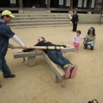 At the far end of the Village there is a large Nobleman’s Mansion complex where you can watch a traditional wedding ceremony. One of my favorite parts of Folk Village was the Provincial Government Office where you can visit a traditional prison. Parents excitedly pushed their children behind the bars and had them “interact with the mannequin dummies” many of which were labeled prostitutes, murderers and tax evaders. The children would smile as they stood in between the village whore and local axe murder as they prominently displayed enthusiastic peace signs. All of the mannequin’s in the jail had been subjected to various tortures. One prostitute had her legs broken using Leg Screw Torture. After walking through the prison we spent the next few minutes in the courtyard of the municipal office where various ancient Korean tortures were available for discovery and photography. What family fun! I could not stop laughing at Korean families who excitedly took pictures of various members being tortured by each other. One young girl lay on a crucifix while her mother (with much zeal) pretended to pound her back with a mallet. One father had his head affixed to a wooden guillotine as his wife pretended to break his legs. Fun for the whole family. Brought me to tears I tell you.
