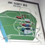 As we left the massive populace of Seoul the condominiums fettered out and small rural communities could be seen from the highway. Suddenly the bus swerved off the Han River and we were now driving up Freedom Road (the highway connecting Seoul to Panmunjom, DMZ territory). The city far behind us, I stared out at miles and miles of rice paddy fields lined by barbed wire fence and military look-out towers. As we neared Panmunjom the bus drove over a massive bridge with large yellow barriers blocking the road at regular increments. Our bus swerved through this maze of barriers until we reached the end of the bridge and drove to the entrance of Camp Bonifas.