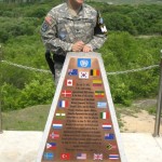 We hopped off the bus and entered a large debriefing auditorium where we were given official United Nations Command Visitor tags which we clipped to our shirts. We were given a clipboard and consent form which we had to sign. Basically indicating that we knew we were entering a war zone. For the next twenty minutes we enjoyed a very informative slide show which was presented by a UN commentator. He explained the history of the DMZ and the UN’s presence here (which is mostly made up of Swedes, French and the Swiss). We were shown pictures of South Korean military personnel as well as the North’s so we knew how to differentiate the two. Basically a “don’t accept candy from strangers,” moment. I found it rather funny that we were blatantly told “not to fraternize with the North Korean military personnel.” Like I am about to wave “yoo hoo,” to the Commie scum.