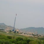 In the North, Gijeong-dong, or as it is called in North Korea, “Peace Village,” has only a small caretaker population. Through the armistice agreement the North felt that it should be allowed a town within the borders of the DMZ since the South already had one. UN troops call this Propoganda Village because only a small group of people cleaning and turning on lights reside within the village. Although from afar it appears to be a modern village, one can tell with binoculars that there is no glass within the windows of the buildings. In the past, North Korean propaganda was sent out by loudspeaker across to Daeseong-dong for as much as 20 hours per day, and reciprocal pop music and South Korean exhortations blasted back. These broadcasts ceased by mutual agreement in 2004.