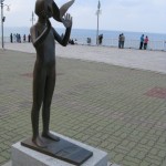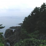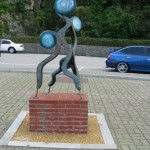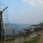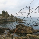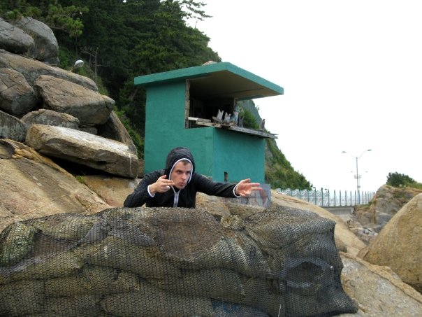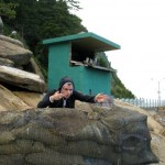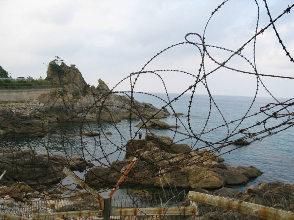 We woke up two hours later feeling fabulously refreshed and ready to continue our day of sight seeing. We hopped in a cab and headed north of the city to the cities famous Beach Sculpture Park. This was our first glimpse of the Ocean (East Sea of Japan) and it was a glorious moment. We spent a few minutes staring out at the small islands made up of frightening jagged rocks and then stared at several modernist sculptures which lined the boardwalk. We hiked downhill for the next hour along a winding cliff side rode. The scenery reminded me a lot of California’s Big Sur highway. One major difference however, would be the coils of barbed wire which run up and down the coastline. These barbed military fences also feature military observatories for two soldiers to stand in and watch for the enemy. Another reminder that North Korea is crazy and can be reached easily if you putter in a boat three hours north.