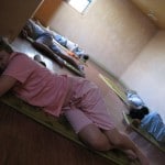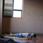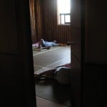 I walked up a winding staircase to the top floor where I found two drunken University students eating ramen at the snack bar. They saw me (this gorgeous white man) and jumped out of their seats and forced me to sit down beside them. They tried to force ramen into my mouth and asked me several times if I would like any “al-ho-hol.” I pulled myself away from them and tip toed around the sleeping quarters. There was one large open room where four men in grey and three women in pink prison outfits lay on thin mats. It looked anything but comfortable. Along the right hand side of the wall there were four doors. I peaked in and noticed that they smelled of cedar and were very warm. During the winter these rooms must be incredibly toasty warm and comfortable for slumber. Further down the hall I found three separate rooms. I peaked through the first door and jolted from shock. I stared into the room and the full moon cast a ray of light onto three men’s bodies. They were sound asleep but looked like dead corpses in the middle of the floor. Each of the separate rooms comes with a bathroom so they actually seem like a normal hotel rooms, just with zero furniture (think large prison cell). I chuckled for a few seconds before moving on to the next few rooms. I found a large empty room where I decided Julia and I would sleep.
