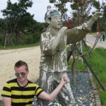 Julia and I both commented on how culturally different Koreans are from North Americans. In North America if there was such a park (featuring hundreds of massive dicks) you would be hard pressed to find parents throwing their children up onto a penis shaft to get a family picture. Back home, this sort of place would be looked down upon, and people would pervert it and only allow people 18 years or older admittance. It was at this very moment, when I saw a mother and her daughter coddle a scrotum the size of two watermelons, that I was happy Koreans were able to have innocent and playful fun at a magical place such as the Sinnam Penis Park.