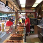 I danced down the hill blaring Franz Ferdinand through my ears and came to the famous street called Drosselgstrasser. This street is the perfect picture of a cute German village. The street is very thin and barely 3 people can walk up and down at one time. The street was very busy when I arrived as all the tourists were looking for a nice spot to enjoy dinner. The restaurants here are hilarious indeed! Each restaurant had its own live performer and some were just brutal! One of the restaurants was packed busy with many locals and tourists. The menu looked expensive and lovely and in the center of the floor were several dancing couples, jumping up and down to the live 5 man polka band. On the other side of the street was the polar opposite. Three glum looking tourists were sitting at an open air restaurant listening to the worst live music I have ever heard. The band consisted of two German vocalists singing in English, “I love you baby” sad enough to kill a cat! Perhaps bad music = bad food here? I wasn’t going to chance it.