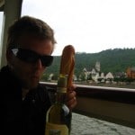 I made sure to get to bed early in order to wake up at 7am for free breakfast and my taxi ride down to the KD Ferry Station on the other side of the river (there was no way I was walking down, or swimming across). For the 8 euros I paid my taxi driver I think I should get half of that back because I literally almost died. This guy drove down the steep winding mountain and over the bridge like a bat out of hell. I was actually grabbing onto the little bars above the Mercedes car door in order to brace myself in case me crashed. I paid a little bit extra for the ferry to Rudesheim because the ship is an antique steam boat (those old ones with paddles on both sides and that constantly toot). The boat is actually UNESCO declared and it only travels through the Koblenz to Rudesheim stretch which is also a UNESCO World Heritage local. I sat on the back of the ship for those lovely 6 hours. The day started off with many clouds and half way through it actually rained for about 20 minutes. The last 2 hours of the trip were blue sky and scorching hot. A nice little change in weather I’d say. I stared down at my organic bottle of Riesling and read the funny quote on the bottle. “This delicately fruity white wine can be enjoyed together with white meats, seafood, mild cheese OR with good friends.” Laughed at that for 10 minutes. Translations never really seem to get the message across. In short the trip allows the passenger to lazy back and relax the amazing castle top vistas, steep vineyard groves and sweeping landscape. I most enjoyed myself after 2 hours as that is when I prepared my lunch. I ate the longest baguette filled sandwich and over a period of 1 1/2 hours consumed my entire bottle of wine. The best part of the entire meal is when my feet went numb and I couldn’t feel my legs. What wonderful scenery for a bit of a tips!