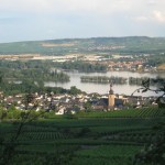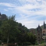 Arriving in Rudesheim I took a taxi to the hostel once I realized it was a 1 1/2 hour hike straight up a mountain (why on earth do these little villages always put their hostels at the top of everything). Rudesheim is a famous touristy spot and is referred to as a Wine Resort in travel books and magazines. The entire city sits bellow a towering hill side landscape which has millions upon millions of vineyards. After dumping my luggage in my 10 person dorm room (which I ended up being the sole inhabitant of the entire evening) I made my way across the hill top on a dirt path. The rain started to pour down so I found temporary cover under a tree until the worst of it passed. I started to laugh when my ipod mixed album started to play “Soft and Wet” by MC Hammer as I sat soaking under a tree. About a 30 minute walk west is a famous monument which you can get to easily with the help of another chair lift (the Germans love their lifts apparently!) The monument is a women in a large robe holding up a torch, a gift from the French…remind you of the Lady Liberty in NYC? From the statue you get an amazing view of the city of Bingen which is on the other side of the Rhine as well as a great panoramic of the city and surrounding valley. So much wine growing in this part of the world! I took many pictures of myself analyzing wine grape clusters, lots of fun! Descending the hill/cliff/mountain from the statue is somewhat of a workout which requires you to lean back as far as humanly possible. As I got halfway to the bottom of the hill I noticed a beautiful rainbow spanning across the river and valley. The rain had stopped about 30 minutes before I headed down hill and now the sun shot out from behind the clouds. The sun danced on the wet wine leaves and steam rose from the pavement of the streets. Rain provides such magical moments as these.
