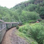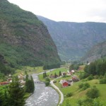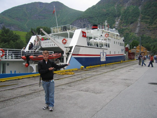 The train left from Bergen and sped to Mydral about 2 hours east. The scenery was beautiful as every few minutes the train would emerge from the black darkness of the tunnels (we traveled through the fjord mountains to get to our destination). As we got a glimpse of the country side you could see huge cliff faces, mountains full of green brush and thousands of kilometers of waterfalls, rapids, rivers and shimmering lakes. As we took this trip through the heart of Scandinavian geography I plugged myself into Bjorks Homogenic album with Joga on repeat (emotional landscapes as the chorus chants). We got off the regional train at Myrdal and got onto the Flam railway. This is a famous railway as I was soon to understand why. The entire trip was 2 hours to Flam where I can only describe the inside of the coach as photography blitz. Cameras were clicking for 2 hours straight! The train climbs the Sognefjorden the world’s largest fjord! We climbed 800 meters and basically spun 360 degrees up the mountain through caves. Every time the train had a short glimpse of the scenery it was breathtaking! HUGE waterfalls like you won’t believe, deep valleys surrounded by shimmering lakes and rapids. At one point the train stopped for us to all take pictures of the famous Kjosfossen water fall. As we left the train we got drenched, it was like having a shower and I couldn’t help but smile as I had come to the right place it seemed. The falls were huge and winding and to our surprise music started to play in the tradition of Viking battle hymns and 3 ladies in blue traditional attire could be seen to the right of the falls dancing in and out of a medieval building! I couldn’t believe my eyes, the Norwegian tourism board actually pays these actors to show up every day at the same time to dance like mystic elves for the entertainment of tourists! Fantasy land indeed!