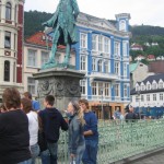 I took the Floibanen funicular to Floyen which is 200m above sea level and provides a stunning view of the city. The funicular literally goes 90 degrees up an incredibly sharp cliff so it is important to close your eyes in order to not lose your lunch. Once at the top I took several pictures of the amazing panoramic views of the city center, harbor and the 7 mountains that surround the city. The best picture was of me dancing with a troll statue 2 times the size of me as the wind blew a huge Norwegian flag behind me. I did the BIG MAC test today. The best way to compare expenses in any city is to compare how much a Big Mac Meal costs. In Canada it is 5 dollars…in Norway it is 70Kro or 10 euros or 15 Dollars!
