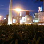 We walked north to the prominent July 9th Avenue which cuts itself through the center of the city. The center of the avenue is lined with a sizable park which features an interesting mix of trees, grasses, shrubs and ponds on each block of this incredibly long central street. It is rather fun to walk down the avenue in the dark as hundreds of cars speed by. An interesting feeling to walk through a beautiful garden filled park while the busiest streets in the city surround you on either side. Sarah experienced an irritating Bank conundrum. We walked into about ten banks to take out money from an ATM until she realized she would only be able to take out a maximum of 350 pesos. After she had finally filled up her empty wallet we walked towards the Oblisco, stopping at several elaborate fountains and a hilarious statue of a cowboy jolting through space on horseback. We arrived back at the hostel after waving the billboard filled street goodbye.