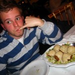 The menu was rather huge and we had no idea how large the portions were going to be. I ordered a glass of vino blanco and Sarah and I shared Hummus and pureed eggplant dip with warm pita triangles. We told the waiter we wanted a chicken, nut and rice pilaf as well as a chicken kebab but his eyes rolled and told us it was too much food. Sarah thought he said, try eating these first three dishes and I’ll come back to see if you want more. After our three dishes we were stuffed. We could actually only eat three of the six huge falafel’s we were given anyways. Then the night suddenly became embarrassing. The waiter hadn´t been very clear. He comes by the table and drops a massive plate of chicken smothered in tzatziki, onions and tomatoes. We both started hysterically laughing and Sarah told him not to bring out any rice just in case he expected us to eat it. The most embarrassing part of our order were the stares we got from across the restaurant. Directly beside our table sat four beautiful local woman who actually pointed, laughed and stared at the amount of food we ate (and that remained on our table). We asked for everything to be wrapped up, paid, and ran out of there in order to remove the red flush from our embarrassed faces.