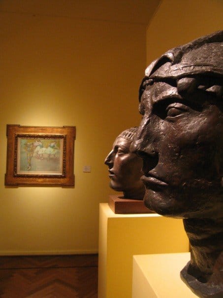 We arrived at the National Gallery and spent a glorious two hours walking through the two floor building. The Gallery went above and beyond any expectations I had. The bottom floor was dedicated to the countries European art collection featuring extensive: Rodin, Chegal, Modigliani, Degas, Renoir, Monet, Manet, Cezanne, Corot, Lautrec, Gauguin, Courbet, Van Gogh, Sisley, Velazquez, Goya, Tiepolo, Guardi, Brughel, Cuyp, Ruebens, El Greco and Rembrandt. I discovered a new favorite artist as well. A Spaniard from Valencia by the name of Joaquin Sorolla who paints beautifully detailed oils with themes concentrating on sail boat ocean side vistas. The top floor of the gallery featured a wild assortment of South American artists. I recognized a famous painting by Eduardo Sivori called Le Lever de la Bonne. The painting features a naked woman sitting on the side of her bed getting ready to wake up and start her day. There were several school groups walking around with tour guides so it was interesting to see which paintings they stopped in front of as these were clearly the ones with the most cultural and historical significance. Local artist Gregorio Lopez Naguil´s painting La China also caught my eye as he used an incredible range of colour and the subject matter of an Argentine woman lying outside of a busy street in China intrigued me. I told Sarah several times how happy I was to be walking through a fine art gallery again. I felt so relaxed and visually stimulated by room after room of art feasts. My favorite section of the gallery was the modern works by local artists of Buenos Aires. Crazy modern wack job paintings that really made you think (or turn your head up side down in some instances to truly figure out what was being depicted on the canvas above).