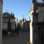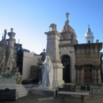 We reached our final destination, the incredible, awe inspiring and slightly creepy Recoletta Cemetery. The cemetery reminded me of films I have seen about New Orleans where the dead are buried in elaborate little houses above ground. We walked under the main arched entrance and directly in front of us was an elaborate tree lined walk way that crosses half way through the cemetery. As soon as we arrived we were taken aback by the grandeur of the sculptures and cemetery buildings. You can get lost incredibly easy as the layout is somewhat of a maze. You could spend hours here (the cemetery takes up several blocks of the city, for lack of a better word lets just say its huge). There are stray cats all over the cemetery. They walk in and out of the little path ways between sculptures of Christ, angels and crucifixes. I wondered if the cats were there for a spiritual reason, perhaps they symbolized hospitality in the afterlife or a form of protection. Sarah and I took hundreds of pictures as the architecture varied greatly from one cemetery building to the next. Some of them were incredibly old and dilapidated whereas other were clearly under ten years old, taking on the appearance of Barcelona´s Gaudi. I squirmed a bit when we walked down one little narrow pathway as the glass of the doorways had broken. The smell of ancient remains is rather acrid. Everyone comes to the cemetery to see the famed Eva Peron aka Evita´s grave. We thought it would be easy to find but had to ask a creepy little white haired man how to find it. Instead of just pointing us in the right direction he hobbled across the cemetery, weaving us in and out narrow pathways constantly crossing his fingers as he indicated all of the crosses surrounding us above. He stopped us at a few famous monuments before we reached Evita´s grave. Several of the cemetery buildings were designed by famed Italians sculptors and architects. The gilding on some of the doors was truly remarkable. Some of the buildings feature a slew of plaques as they are a funerary for the entire family, therefore housing as many as ten or fifteen individual coffins. We finally reached the Famila Duarte burial where Eva is buried. The gilded front door was decorated with freshly cut red roses and prayers that had been taped to the buildings main wall. A lady beside me started to cry and held her scarf up to her face as she prayed in front of Santa Evita´s resting place. We walked to an open area of the cemetery grounds where a huge table like stone bench was located. I sat down, plugged my i-pod into my face and listened to Don´t Cry For Me Argentina as I stared out into the red sunset filled sky. The Recolleta Cemetary is one of the most beautiful places I have ever visited. A must see stop in Buenos Aires, you can easily get lost amongst some of the most beautiful architecture (and most famous dead people) for hours and hours.