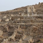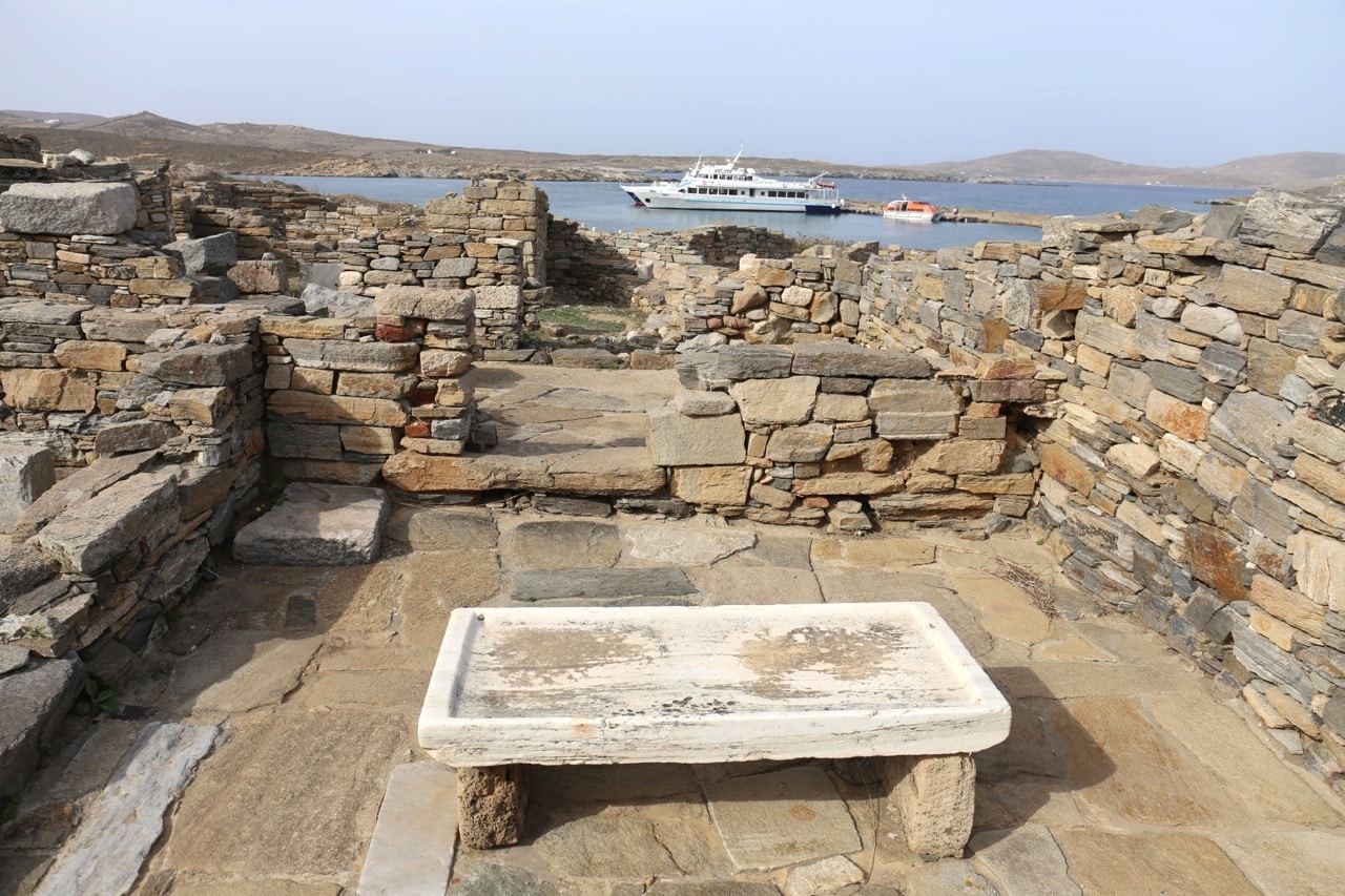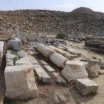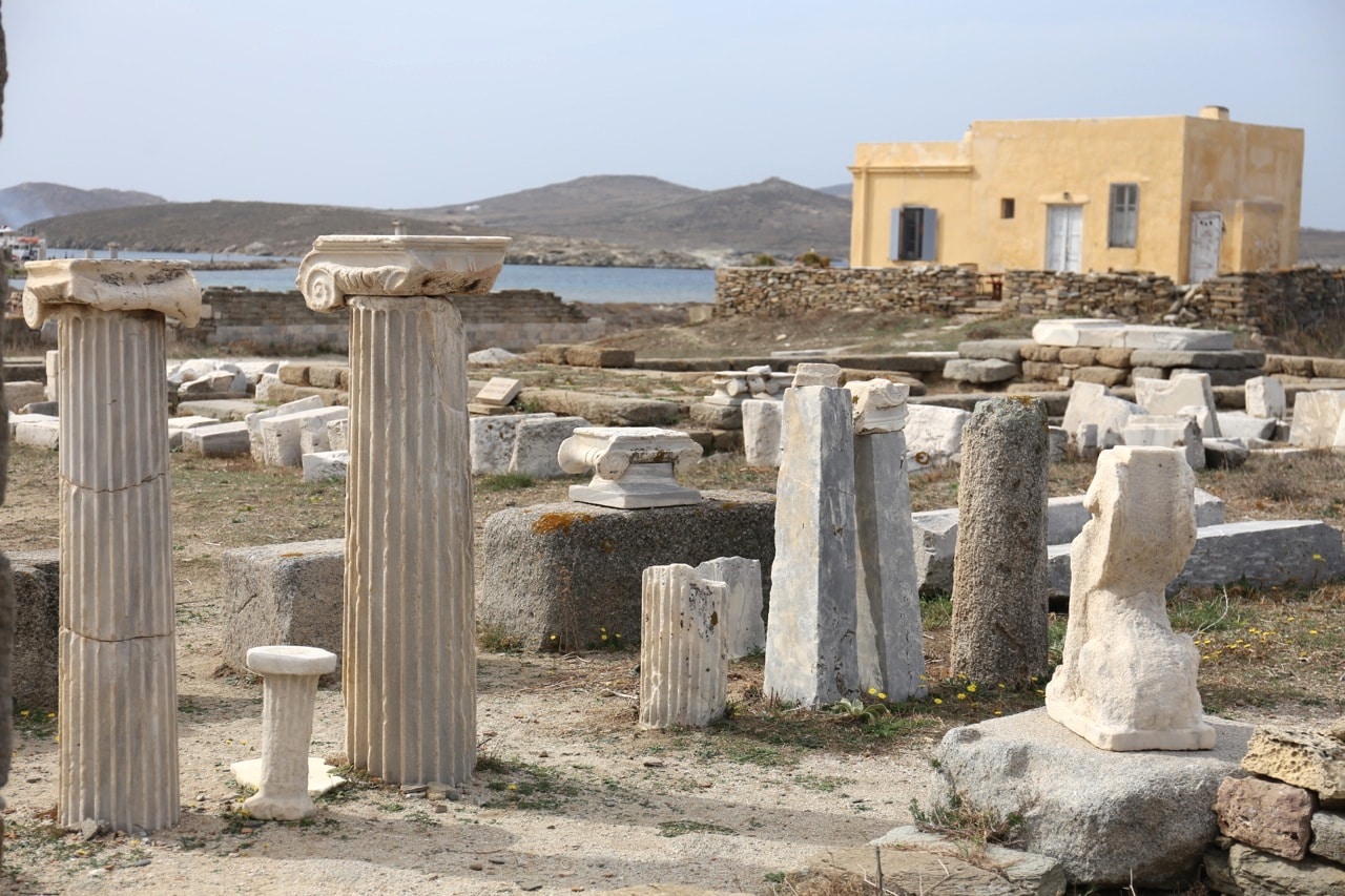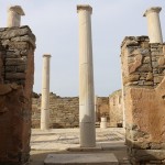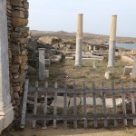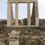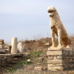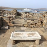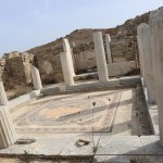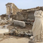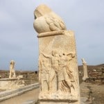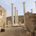 The remains of ancient Delos, the Cyclades’ sole UNESCO Heritage Site, mange to convey the past grandeur of this small, sacred isle a few kilometres west of Mykonos. The ancient town lies on the west coast on flat, sometimes marshy ground that rises in the south to Mount Kynthos, beneath which spreads the sanctuary dedicated to Apollo and his sister Artemis. The Odyssey and the Homeric Hymn to Apollo, written about 700 BC, refer to Delos as a famous religious centre of the Ionians. A large city of about 30,000 inhabitants grew up around the sanctuary in the Hellenistic period.