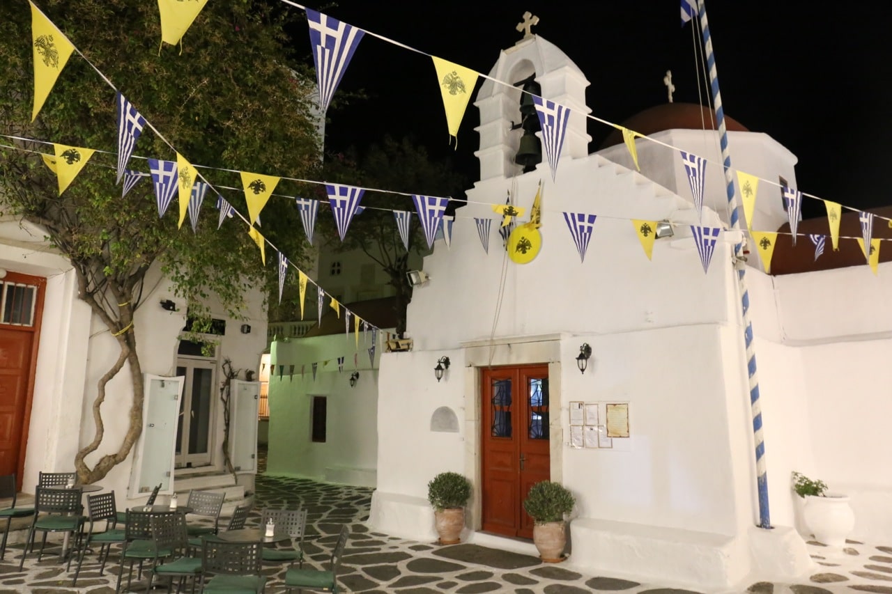 There are two other gems outside of town which you best not miss. Make a quick stop in the tiny town of Ano Mera and whisk your way through the Holy Monastery of Tourliani. Originally built in 1547, the ancient religious site plays home to a bright purple bougainvillaea and ten practicing monks.