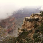 We were picked up at the airport by the Pink Jeep company which has been operating in the area for years. We all huddled in the back of the vehicle totally mystified that just an hour ago we were basking in 40 degree desert heat. I tried to keep a chipper mood even though most views were filled with white fog. On our last stop at the Grand Canyon Historic Village we explored the grounds of the historic El Tovar Lodge where for a short 10 seconds the clouds parted and I got a glimpse into the worlds Grandest Canyon. Success!