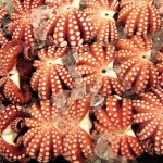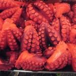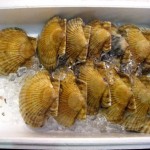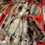 I will forever remember my first impression of the market. We walked through the back end where bagged fish on ice were being loaded onto trucks for delivery within the city. All of a sudden we entered a large open area which made me feel as though we were standing in the middle of an express highway. Fish scooters whizzed along the road as a police officer tooted his whistle on a raised platform in an honest attempt to organize fish traffic. A collision of tuna meets octopus would not be a desirable situation, so they try there best to systematize the traffic flow. Each scooter driver wears a Tsukiji Fish Market t-shirt, a white towel around his forehead and stands in front of a massive steering wheel as they jostle across the pavement with crates full of seafood towering behind them.