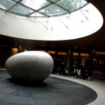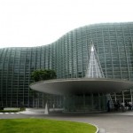 I hopped on the train and headed for The National Art Center Tokyo, smack dab in the middle of the city. The architect for the museum was Kisho Kurokawa and the facility has 47,960 square meters of floor space on a 30,000 meters squared site with four stories above ground and one below. The National Art Center is a unique and innovative art exhibition facility: instead of maintaining a permanent collection, it makes the most of 14,000 square meters of exhibit space, the largest in Japan, and focuses on serving as a venue for various art exhibitions from around the world. The building is a masterpiece in contemporary architectural design. The exterior is made entirely of glass which rolls like a wave of organic movement. The interior of the Center features a long central hall with a beautiful Café on the first two floors. The building is absolutely huge. With six exhibition rooms, it really seems like six art galleries held together by a central boulevard, Café and Museum Shop.