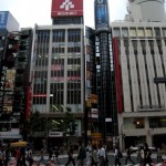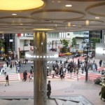 Shibuya is a major nightlife area in Japan and a fashion district for young people. Harajuku is actually located just north of the station so many consider Shibuya Station the gateway to modern Japanese street fashion. Shibuya is famous for its scramble crossing which is The Worlds Busiest Intersection. It is located in front of the Station and stops vehicles in all directions to allow pedestrians to inundate the entire intersection. Three large TV screens mounted on nearby buildings overlook the crossing. The Starbucks store overlooking the crossing is also the busiest in the world. The 2003 movie Lost in Translation featured a scene. Scarlette crosses the busy street and stares up in awe at a huge brontosaurus walking across the massive screens affixed to the towering buildings above.