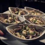 We ordered a beaker which featured a gelatinous human eyeball. We were given a bowl of breadsticks to dip in sweet whipped cream cheese. Our waitress knocked on our jail cell door and pulled back the screen. She was dressed in a black and white striped chain gang outfit. We spent the next hour munching on a plate of Omurice filled with pork, bean, sweet mango, and green onion. Our second dish was called Russian Roulette which featured five bowls of cold soba noodles. Four of the bowls featured a sweet soya sauce but one of the bowls was lathered in a mysterious wasabi spicy sauce. We slowly nibbled at each bowl, certain not to down an entire bowl in fear that it may burn our mouths.