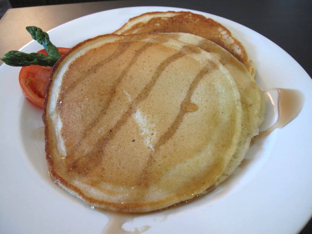 Fluffy Buttermilk Pancakes, butter and maple syrup