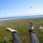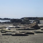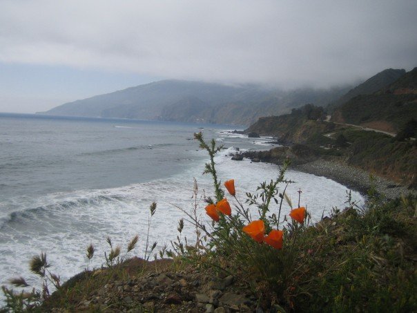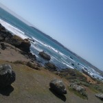 After drinking several glasses of vino in the morning and afternoon we drove onto Coastal Highway 1 along Big Sur. This is one of the most famous drives in North America as it skims the sides of the most beautiful ocean front in California. We listened to the Beach Boys and The Beatles Rubber Soul album along the way. I was now heavily entrenched in Dan Brown’s The Deception Point which was a thrilling book to sift through. We stopped for lunch on a beautiful field just off the beach where many people were kite surfing across the glitzy mirror like coastline. There were several sea lions moaning on the beach and a family had a baby piglet running around the shore with their smaller children. It was the perfect odd little scenic spot to open up a packed lunch. We nibbled on crackers, aged cheddar, wine and nuts. Shortly after sitting amongst the dark green and straw yellow foot high grasses blowing in the wind I realized I was having an intense allergic reaction to the pollen in the air. My eyes turned bright red and I could barely open them. We headed back to the car and my dad gave me an antihistamine which kicked in about an hour down the road. Big Sur is certainly a gorgeous, jaw dropping scenic drive full of high cliff tops, rolling green hills and stretching, rocky, dramatic, beach fronts. My father started to bug me after I tolerated about two hours of constant chirps consisting of key words such as “spectacular, this is unbelievable, yahoo!”