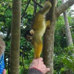 I woke up and forgot where I was. After a few minutes I realized I was under a mosquito net (and not a coffin). I confirmed that I was in fact living in the jungle as I could hear monkeys screaming in the trees outside. We woke up for breakfast and I couldn’t help but laugh at how the British couple were dressed. The husband was dressed as if he were an extra in an African Safari documentary with pants tucked into his socks, a huge brimmed hat and an outfit entirely made of khakis light weight North Face. As we ate breakfast we could see hundreds of squirrel monkeys jumping from tree to tree across the bridge a few feet away. We snacked on fried fritters and a lovely cup of jungle fruit. Half of our group had the runs. The humorous backpacker term for this condition is called pissing through your ass. Sarah did not feel well so she stayed at home base as the rest of us climbed into the boat for another wild excursion.