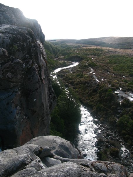 The following day we headed south around the “great lake” towards the Tongariro National Park for a picnic lunch and a two hour walk through native bush and waterfalls. When we arrived at the park it was actually snowing and our “picnic” was more of a freezing huddle under a park picnic bench. It finally cleared up a bit and we were able to enjoy a beautiful hike through one of New Zealand’s most scenic parks. Amazing rolling hills, snow capped mountains in the distance and water falls. In the afternoon we traveled through to the ultimate adventure lodge – River Valley, situated amongst towering cliffs and bush-clad hills. I will never forget how cold I felt that evening at the Lodge. I had a quick hot shower and bundled up in a sweater beside the fire with a baileys on the rocks.