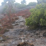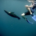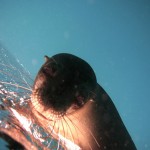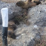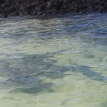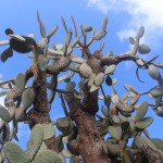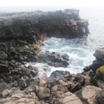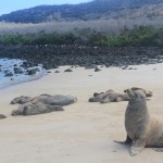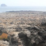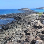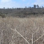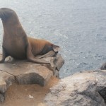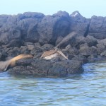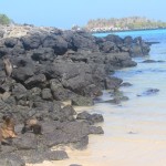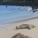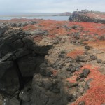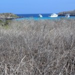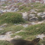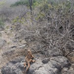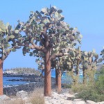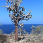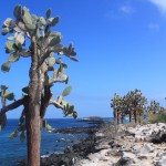 In the afternoon we visited Santa Fé Island (also called Barrington) which is well-known as a great place for watching (and swimming with) sea lions. There is only one place to land launches, but two different trails offer varied experiences. The shorter of the two hikes leads from the beach into a sparse forest of Prickly Pear Cactus. The second, longer trail goes up a cliff side into an area inhabited by Land Iguanas. The interior terrain of the island is interesting, with a good panoramic view from the cliff top. Back on the beach, it is easy to sit for hours just watching the antics of the sociable sea lions.