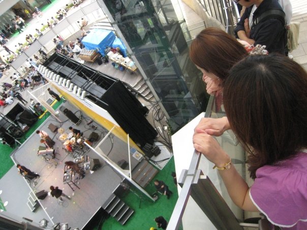 I left the gallery and hopped back in the elevator which now dropped to ground level at lightening speed. I was thrilled to discover that Japan’s National Beer Festival was taking place in Roppongi Hills on this very day! The amphitheater was full of thousands of people quaffing beer steins and listening and watching live Japanese pop and rock musicians on stage. The atmosphere was fantastic for a tourist who had no clue such a celebration was to take place. The thrill of happenstance! I ordered a stein of Asahi and Sapporo and spent the next forty-five minutes standing beside a banister looking down at a rather excited Japanese pop singer as he threw his guitar around the stage. Directly across from where I stood, the upper crust sat eating at L’Atelier de Joel Robuchon. I wondered if Mr. Mori was in there, and perhaps, would he mind inviting me for lunch?