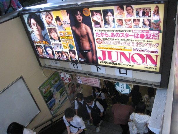I walked up the platform steps as my massive back pack attempted to drag me down the stairs. I clutched the banister and made it to the top with closed eyes and a sigh. I soon groaned, noticing hundreds of people waiting in line for the next train. It was 9pm on a Saturday evening, rush hour, dangerous here in Tokyo. I forced myself to stay alert by pinching the insides of my cheeks. Then the train slowed to a stop and the indoor chimes let of an overly jubilant sonata and everyone pushed into the crammed train car. I stood squished in the middle of the train surrounded by what appeared to be the entire city of Tokyo. I could not move as my bag was jammed in between two people behind me. I could not turn to apologize. I could not apologize for that matter, I do not speak Japanese. I occupied myself by staring at the train plasma screens which announce delay times on each of the various Japan Rail Metro lines and chimes each upcoming stop.