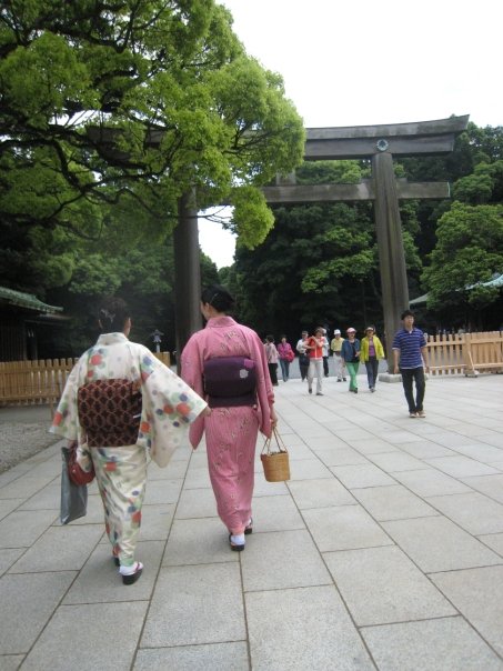 At the entrance stands a massive torii, a formal wooden gateway indicating that you are entering a sacred place. We crossed over a small bridge and walked up several gravel paths before arriving at a road flanked on both sides by colourful sake barrels. Arriving at the Shrine we stood by a masterful work of nature, a lush green ancient oak tree. Thousands of prayer plaques hung on boards which surround the tree. One prayer caught my eye and made me laugh, “Go Habs Go!” Oh Canada, sometimes I miss you. I was enjoying myself in a euphoric culture shock sort of way so grabbed a plaque and wrote, “The world is perfect at this very moment.”