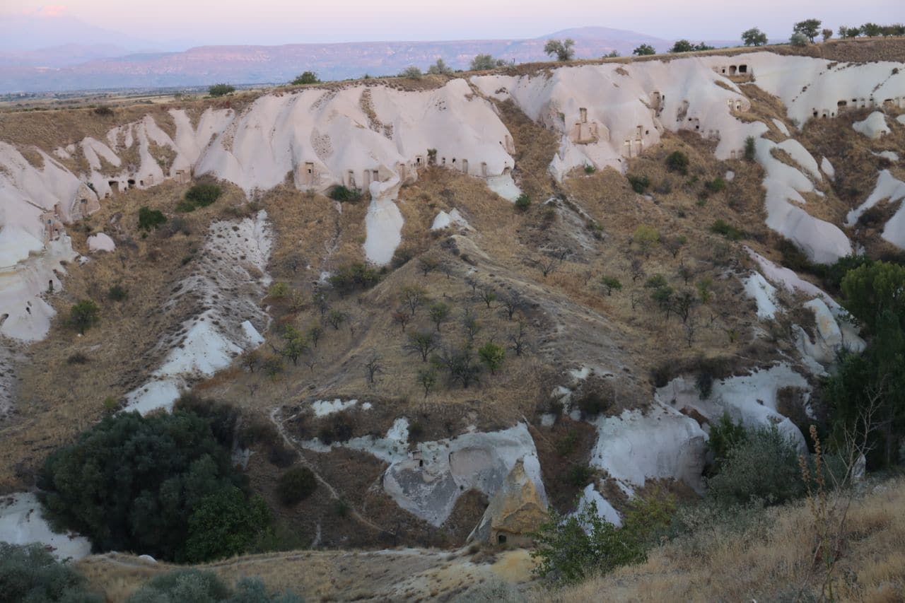 For most visitors to Cappadocia a hot air balloon trip to watch the sunrise is at the top of their to do list. I had just hopped in a hot air balloon on my recent trip to Dubai so decided to pass on splurging. If fear of heights or the cost of booking a flight are prohibitive you can still enjoy the majestic experience by setting your alarm clock and waking up early. My final morning in Goreme had me up at 6am for a taxi to the airport. I sat on my hotels rooftop terrace while sipping my last glass of Turkish tea and was flabbergasted as hundreds of hot air balloons filled the sky. Never a dull moment in Cappadocia. Mind boggling magic.