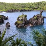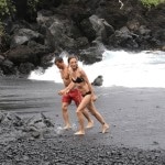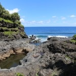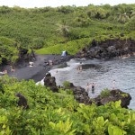 Wai’anapanapa State Park: a short and easy trail descends from the parking lot to a beautiful little cove famed for its shiny black pebbles and fine black sand, affectionately referred to as Black Sand Beach. After relaxing on the beach hop in the ocean for a dip before paying a visit to the parks famous cave system, a collapsed lava tube which holds two successive grotto-like pools.