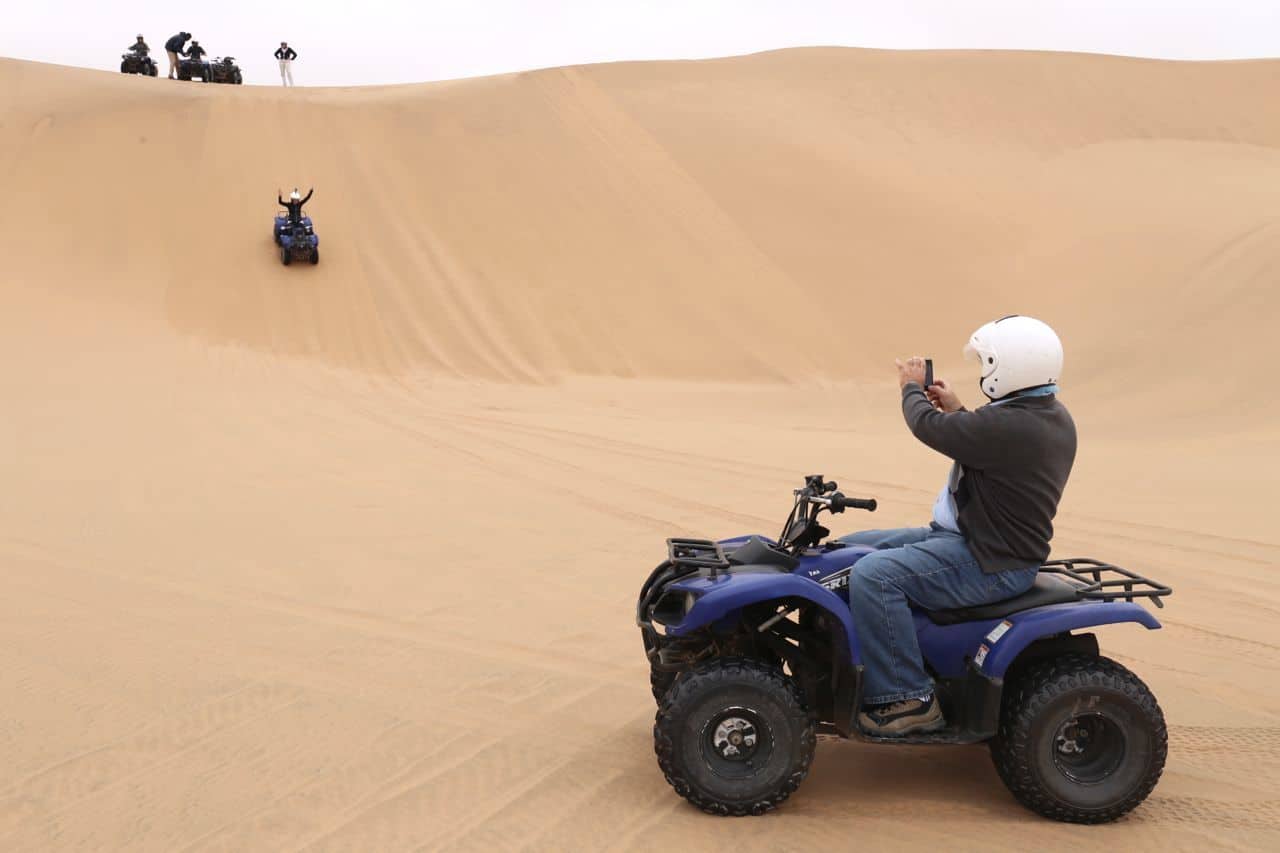 Next stop was a real adrenalin rush! Thrill seekers rejoice at the opportunity to hop on a four-wheeled motorbike and zoom up and over a boundless expanse of shifting sand dunes. We geared up at Desert Explorers and spent the next hour revving our engines up steep sandy dunes, zig zagging through what seemed like the worlds largest sandbox.