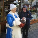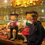 We walked up the main street to putter around the holiday market. Again many more woolen products, little elf statues and glass and leather jewelry. We bought a local treat as a walk about snack: a waffle cigar cone which has dulce de leche pumped into the center. We had lunch at a little spot called Dias de Zapata, serving up authentic Mexican cuisine. I had a plate of re-fried beans, chicken tacos and corn and rice pilaf. We walked further downtown realizing that the holiday created somewhat of a ghost town. Most shops were closed but the cities biggest chocolate shop was open! We each meticulously selected an assortment of hand made chocolates and had a waffle bowl of creamy gelato. I selected chocolate mint, banana caramel and raspberry cream. We sat in the main dining hall and laughed as we looked up to see that the entire ceiling was decorated in corny mall display dummies, Swiss elves making chocolates.