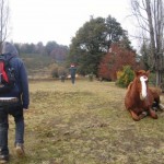 Sarah and I walked around the lake and took pictures of horses, ducks, chickens, dogs and cows. Throughout the Seven Lagos National Park (where we spent most of our day) the mountain roads are teaming with wild cows. I didn´t even know wild cows existed until now. They stand staring in the middle of the road as tour buses honk their horns and shout for them to move back into the forest. They don´t seem to be the most intelligent animals. We stopped at many scenic and panoramic river valleys, mountain tops and lakefronts. It was really nice to just sit down and stare out the window as the day became warmer and the sun cut through the clouds. The forests here are all autumnal reds, oranges and yellows.