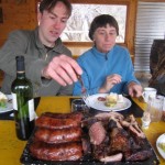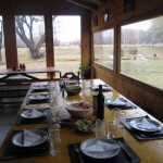 Our horses spent the next hour descending the mountain tops (which was the most terrifying experience of my life). My horse felt the need to trot down steep cliff faces. At one point my horse was crossing a mountain with barely a one foot diameter for its hoofs. I looked down to my right and saw river rapids, closed my eyes and said a brief prayer. After a heroic and ever so memorable horse back tour of Patagonia’s rugged terrain we all arrived back at the farm house for lunch. We all ran to the piping hot fireplace to warm up as our hands had seized up from the cold. My legs and ass could barely move I felt like a spaghetti noodle. Lunch was a splendid assortment of traditional Argentinean cowboy grub. We had a bottle of Malbec, empanadas, fresh salad, sliced potatoes with garlic and herbs, baguette, various spicy pesto and pastes for our gigantic sausage and a beef steak platter. We stuffed ourselves and then walked over to the fire place to enjoy a hot cup of tea before our driver drove us back into the city.