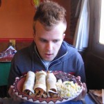 In the morning I headed downstairs for breakfast and sat with the quintessential Frenchman. He is from the city of Paris, has a perfectly athletic body, curly blond hair and a matching mustache. I didn´t realize we were both sporting mustaches, how corny is that! Sarah and I walked downtown to the town hall which is outfitted with a large glockenspiel clock tower. We stopped at the Friends Cafe which is open 24 hours a day and has an extensive menu. The interior is really eclectic with mannequins skiing above your head and many antique toys hanging from the ceiling. The walls were covered in old movie posters and Three Stooges memorabilia. I ate a lovely batch of sugar covered churros and a cup of thick cocoa. We walked across the street to one of the many grandiose chocolate shops. The entrance of one of the shops featured several huge Russian dolls spinning over the doorway. We purchased a bag of chocolates: coconut, lemon, toffee and almond and Bailey’s cream. The chocolate was shockingly cheap; only three dollars for the both of us! We walked past a spa sign and decided to walk inside and inquire about the cost of certain packages. We were greeted by a man who looked as though he would be a member of the gay mafia. A huge portly flamboyant man who had hair longer than Rapunsel. His head smelled of chemicals as he was currently dying his hair dark brown while working on a haircut for one of his seated customers. He told us that a one hour massage is forty pesos which is about twelve dollars! Back home we pay at least fifty dollars for a one hour massage so this was an incredible bargain. We felt a bit sketched out by the seedy location. When I found out that the gay Mafioso would be my masseuse a chill went down my spine. We walked to the lake front and nibbled on our chocolates whilst staring out into the sunshine snow peaks. We discovered that our little perch was in fact the local make out point. We enjoyed staring at the several cars full of young Argentinean couples as they expressed their undying love for each other publicly.