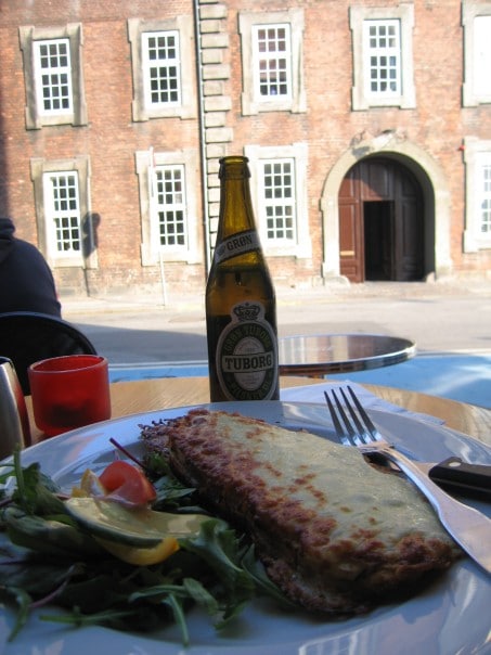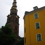From the museum I walked to Christiansborg (Parliament) which is surrounded by canals (and many long tourist site seeing boats). In front of the Parliament is a huge equestrian statue and fountain where I sat to eat an apple and feel the mist of the wind pushing the fountain water onto my face (today was a hot day with brilliant sun!) I walked down to the main shopping square and noticed everyone sitting out on the street eating iced cappuccinos. Walking east you reach the national library and three huge churches. The architecture here has mesmerized me even more than Paris ever could. The Danish are unique, creative and really wacky in how they dress, design buildings and create art work. My favorite church is to the left of the Parliament and consists of a steeple which is made up of two tree trunks reaching for the sky as they weave in and out of each other. I walked the long Stroget which is the shopping street comparable to the Champs in Paris. I reached the Municipal building made of dark orange bricks with a glorious clock tower and sat at a nice cozy bar to drink a Danish Carlsburg beer! I hadn’t eaten all day so once I got up I made sure to walk in a straight line to the best of my ability and find a place to eat. It is impossible to find Danish food in Copenhagen (or at least it takes a lot of work!) I ended up sitting at an outdoor cafe for a Tuborg and Croque Monsieur (I was happy that I had tasted the two most famous Danish beers in under 30 minutes). I went back to my hostel to clean myself up and organize my things before I took a nice long walk through Orsteds Parken which turned out to be a bit of a sketchy area to the north. There is a large bridge that passes over the main lake in the park and apparently it is where men and women go to cruise for relationships. I noticed someone following behind me but thought nothing of it until they continued to follow me around the entire park. My little tourist angel sat on my shoulder and told me to get out of there. So I left the park and the stalker continued to follow me onto the street. From the street (which I realized was empty) I ran to find a main street and thankfully lost the creepy stalker in my wake. After such a thrill like that I had to stop at a bar for an Amaretto and Cranberry! Its like a post stalker fix. I sat right bellow the clock tower and talked to a few lovely Danish guys who tried to explain why so many Scandinavians who don’t have blond hair actually bleach their hair (if you aren’t blond you aren’t cool apparently). I walked home at around 11pm through the dark and brightly lit main streets of Kobenhaven.