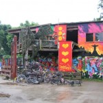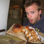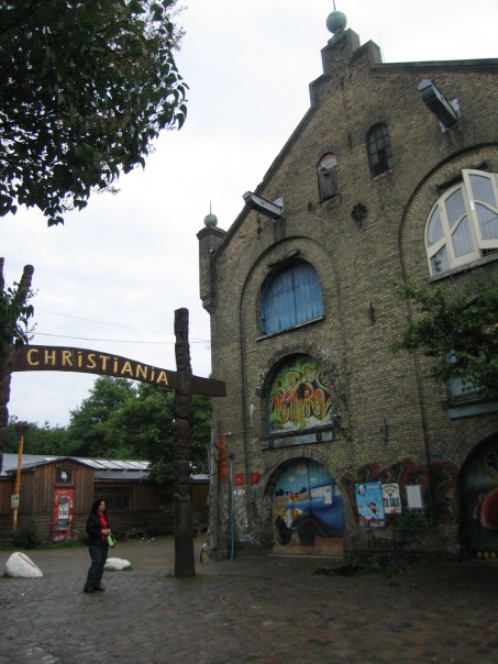 In the morning I realized I had brought the bad weather from up north with me. The entire day it rained and I knew it was inevitable that I would get soaked so I only wore my t-shirt in an attempt to let nature clean out the mustard spots from the day before. Today was a serious food pilgrimage. I only had one more day in the city and HAD to eat traditional Danish cuisine or all would be LOST. The tourism board explained to me that it is very hard to find true Smorebrod (Danish open faced sandwiches) as they have become a delicacy. Globalization had destroyed the most sacred and made Culinary Tourism a back breaking effort. The streets are lined with Chinese take away, McDonald’s and Kebab stands…no open faced sandwiches could be seen. I had the lady at information mark on my map every possible area for me to search and set out for a day of wet culinary adventure. My first stop was across the bridge to the island of Christianshaven. On my map I had a little x that represented the best Danish bakery in the city and thanks be to God I found it easily. I took a copious number of pictures and purchased two Danish treats. Kanelkrans which is a huge Cinnamon, icing and nut braided pastry and Chokoladebolle which is a huge spherical treat made with choix paste (similar to an eclare) the center if a custard filling and on top you will find hardened dark chocolate! I marched east to the ever so famous State of Christiana. One of the waitresses explained the history to me: the government in the 1960s wanted to conduct a social experiment. They walled the perimeter of Christiana and called it a separate state which had its own currency and coins, no taxes and individual laws. The area became a haven for hippies (who still live throughout the area). As I entered I thought of many of my Guelph friends who would absolutely die to live here. Everything is painted by artists; beautiful graffiti on the walls, garbage buckets, bridges etc… The city is a haven for the relaxed pot smoking Bohemian. Within the square of the city is a hilarious statue made of chains that resembles the statue of liberty. Apparently every night at 8pm the statue has gasoline poured onto it and is lit on fire (an ode to Capitalism and America, maybe not). The bars in this area were full of happy Danes at 10am and the sounds of Bob Marley could be heard everywhere. The area has a huge skate park, bars that sell local brewed hemp beer and a long main street that has about 10 large trampolines on it so that you can literally bounce down the street! This is hippy art culture at its finest! I was most interested in the several graffiti-ed walls with huge signs that exclaim SAY NO TO HARD DRUGS! They enjoy pot but crusade against hard drug use, interesting. As I walked out of Christiana and walked past the Free Tibet Shop I laughed as I past the banner over the exit. “Welcome to the EU”. These hippies are excellent jokesters poking fun at the heart of anti-establishment and the European Union (which they clearly are not a part of)!