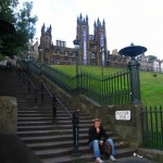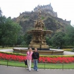 The following day was absolutely perfect. Just before I headed out the door for the day I had a call (finally) from my Aunt Susan who was in town with my Grandma on a Scottish tour. I was thrilled on the phone and heard they were planning on going on a bus tour of the city so I told them I’d meet them in 20 minutes. I arrived to big hugs and kisses and hopped on the double decker bus for a very informative one hour view of the city on wheels. After the bus romp we walked to Janners famous department store and bought a few things (Scottish broaches and Walkers Shortbread). We were hungry by then so we found a nice little pub in which I had a pint of beer and a plate of fried potatoes and tempura battered chicken. We walked to the Edinburgh Castle Garden Terrace and left Grandma by a nice garden beside the Scott monument. Sue and I walked down to the fountain and took some pictures. The gardens at the Castle are very important to the family as my grandmother sprinkled her mothers ashes in the blue flowers of the gardens. We walked back to the Welsley Bridge and met our company for the afternoon and evening. The two lovely folks are “my great grandmothers cousins daughter and husband.” An interesting connection, they took us on a private drive around the outskirts of the city. Beautiful views of the city and “Firth of Forth” (overlooking the kingdom of Fife) can be seen from the hill top Observatory at the Calton Hills Nelson Monument. We drove around the famous Salisbury Crags which is an ancient dormant volcano gracing the city as a noble hill.