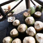 Our first stop was a visit to an old farmhouse where two smiling men clutching massive machete sliced and diced fresh coconuts. We each grabbed a straw, sipping and slurping fresh coconut water as the late morning sun bleated across the horizon. Two lazy bulls stood in a mountain of mud as a flock of hens gorged on leftover coconut cream while their chirping chickadees zoomed around their legs.
