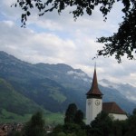 Our next stop was Frutigen, Patricks home town and a very cute village in the Alps. We stopped along the way so I could get some pictures with a few heaving dairy cows and took a couple of great pictures of the view (the area was cloudy today so the mountains were topped off with whipped cream clouds). Patrick was very thoughtful and took me to the country’s most famous restaurant! Landgasthof Ruedihus Kandersteg, an old farmhouse built in the 1700s, now transformed into a bed and breakfast and restaurant. The bottom floor is a dining room which caters solely to cheese courses, the top floor serves only meat dishes. I really enjoyed this food service dichotomy. Meat upstairs and cheese downstairs, excellent. The place is beautiful, full of Swiss clocks, antiques and pictures of the famous people who have visited (including Kofi Anan and Prince Charles). We sat downstairs and I ordered Cheese fondue with onions and bacon. Patrick had a plate of potato rosti with raclette cheese and bacon. We both shared an ice cold bottle of Swiss white wine. I literally almost burst. I have never felt this full in my life. The next day I experienced what the Swiss call a cheese hangover.