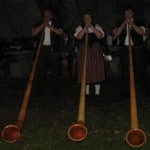 Our final stop, we drove to the Roman ruin castle atop the town’s highest peak and walked around the rubble. It started to rain, pitter patter, so we found the Nations Day celebration tent which wasn’t hard to find as all you have to do is follow your nose to the smell of sausage. We sat down inside the tent and ordered a beer as we knew we would be sitting for 3 hours. The first act was a traditional Swiss Quartet (one stand up bass and three guys playing the Swiss Orgal). It was really catchy at first, kinda like polka, but after an hour of it I think I was going to go insane. Patrick started laughing as he hates it, I assumed it was used as punishment for those convicts in prison with particularly seedy pasts. The second group was a blue uniformed marching band. The best part of the band was the little old man in the center who was in charge of swaying the regional flag to and fro. We joked that he had the hardest job and had to practice at least twice a day, more than any of the musicians. The last two acts were a real treat; a huge 30 person yodel fest (yodeler hee hoo) and an Alp Horn trio (the horns are HUGE and exactly like the ones in the Ricola commercials). The night finishes with a big firework show and the National Anthem (I hummed with respect and patriotic pride). We hopped into the car as the rain poured down, I opened my window so I could stick my hand out into the rain. We turned on the radio and listened to “It’s just a little crush”. As we left the Alp region back to the capital I looked out into the dark black night and could see what looked like little fire fly’s twinkling all over the hills. These were in fact the lights of the many families enjoying their Nations Day celebration inside their dry chalets. A very busy 13 hour day, I felt satisfied that I had seen the “real Switzerland” and dozed off to sleep.